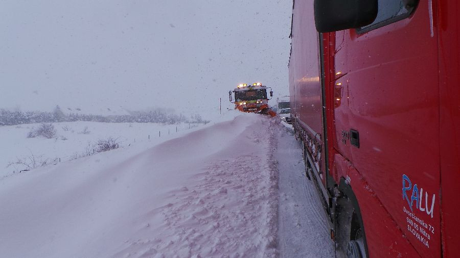 Una docena de camiones inician la mañana de Reyes embolsados en la A-67, a la altura de Molledo