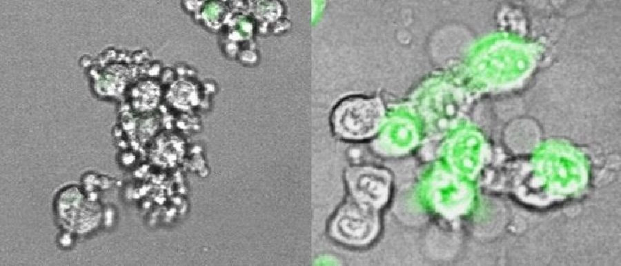 Pero si la gasdermina E está presente y funciona, las células cancerosas se \'incendian\', a través de una forma altamente inflamatoria de muerte celular llamada piroptosis.