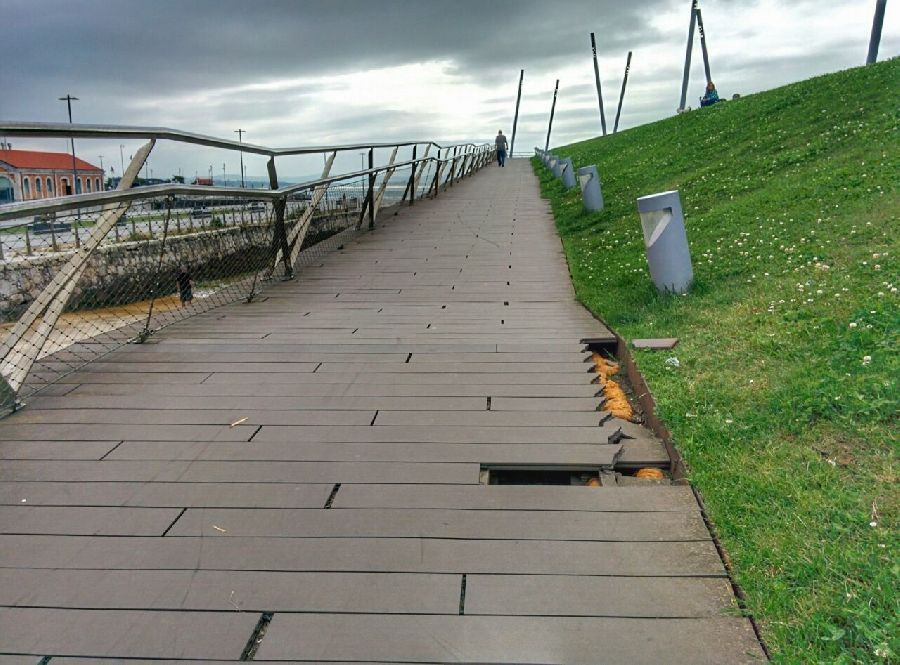 El proyecto contempla la sustitución del actual pavimento de madera sintética por un sistema de piezas prefabricadas de hormigón compacto de alta resistencia, con un espesor aproximado de cuatro centímetros.