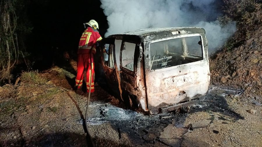 Además de los Bomberos, hubo que movilizar a efectivos del Servicio de Montes por la cercanía de vegetación en la zona donde se hallaba la furgoneta.