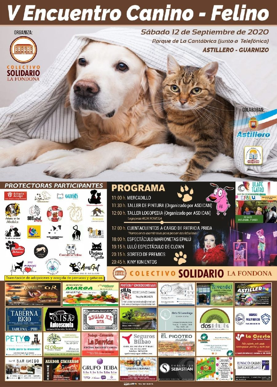 El colectivo solidario La Fondona, en colaboración con el Ayuntamiento de Astillero y Asdican, ha organizado el V Encuentro Canino-felino Astillero-Guarnizo, que se celebrará este sábado 12 de septiembre en la campa de La Cantábrica y que contará con el habitual mercadillo, talleres y actuaciones.