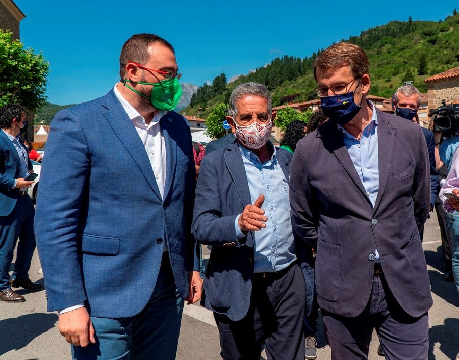 Revilla se ha pronunciado así a preguntas de la prensa durante el encuentro que hoy ha mantenido en Liébana con los presidentes del Principado de Asturias, Adrián Barbón, y de Galicia, Alberto Núñez Feijóo, con motivo del descubrimiento del mojón que, con la flecha amarilla y la concha de vieira, imagen y guía del Camino de Santiago, hermana a Santo Toribio de Liébana con Galicia y será el primero que se coloque en España.