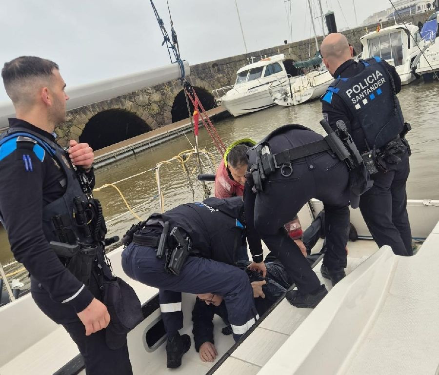 Cuatro agentes de la Policía Local de Santander han rescatado este sábado a un hombre de 80 años que ha caído al mar en el puerto deportivo de Puertochico.